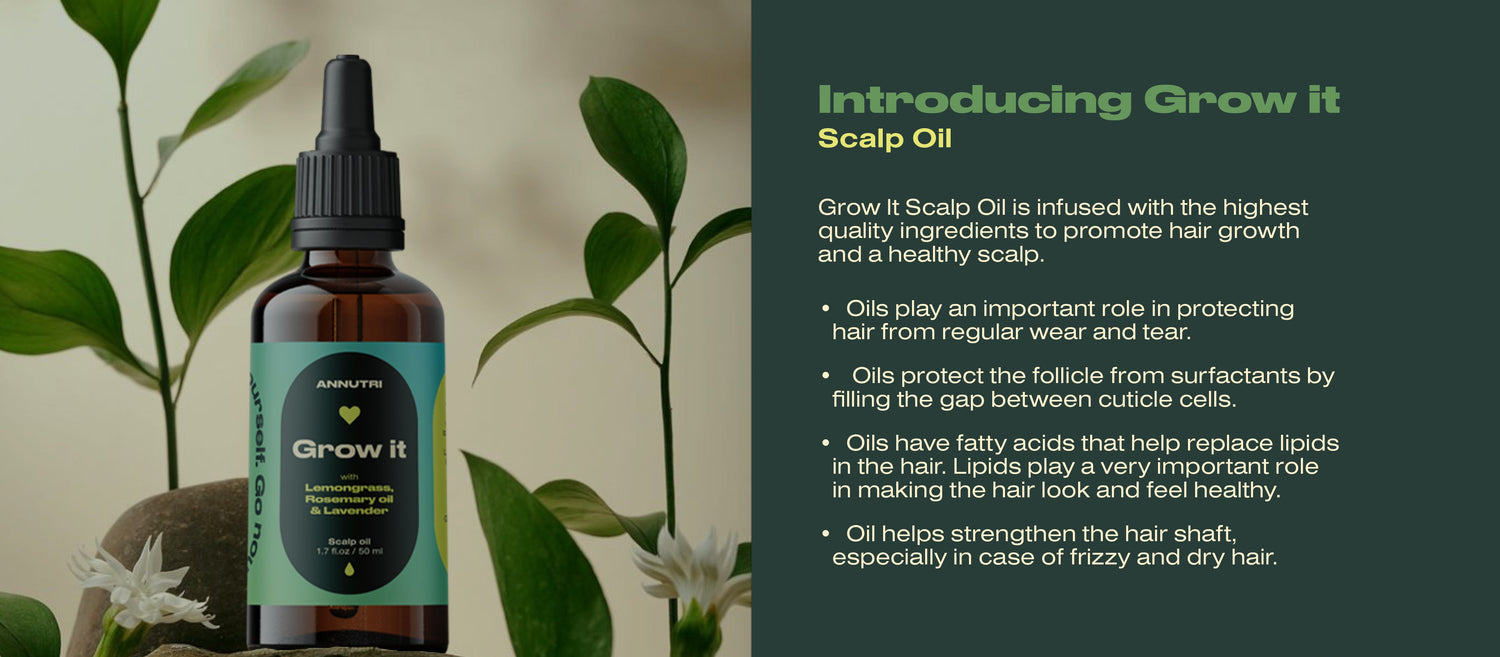 Grow it Haircare pack - 2 Months of Grow it supplements, Scalp oil + FREE Scalp brush