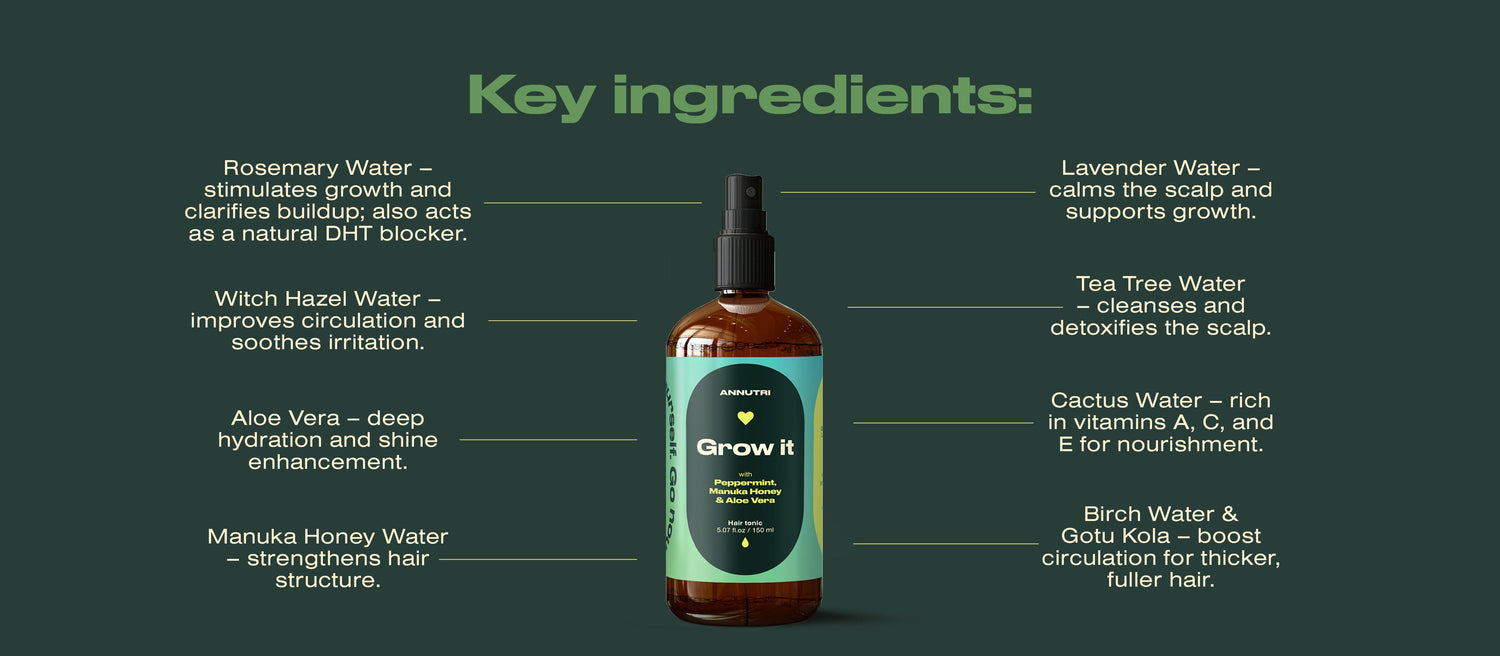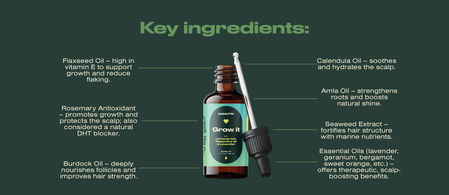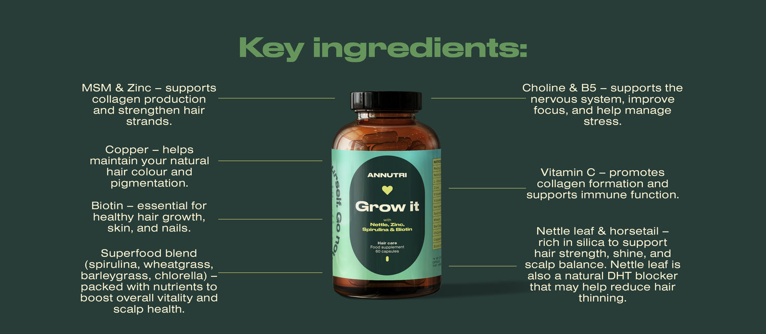 Annutri Grow it Gift Set - 2 × Grow it supplements + Scalp Oil (€12 saving) + FREE premium cosmetic bag