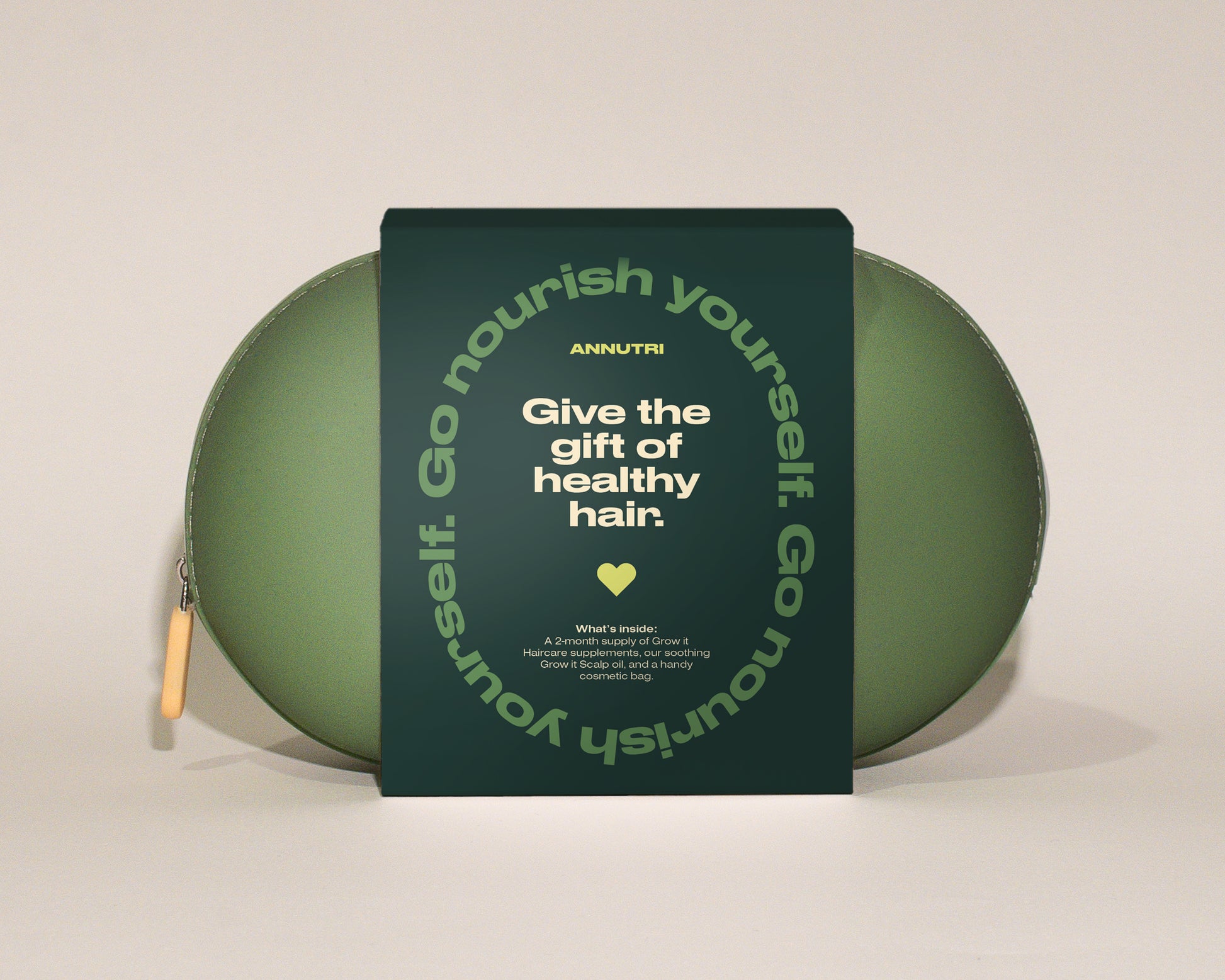 Annutri Grow it Gift Set - 2 × Grow it supplements + Scalp Oil + premium cosmetic bag
